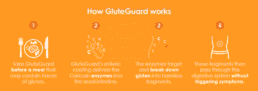 - Taken before a meal, GluteGuard offers protection by breaking down hidden gluten before it interacts with the intestinal lining and triggers symptoms.